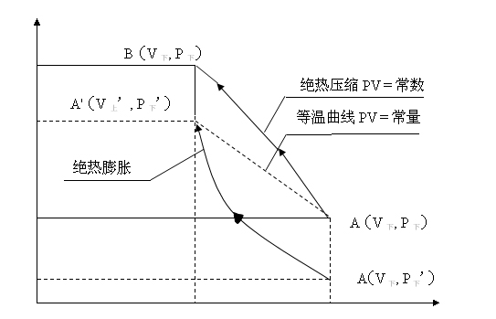 當錘頭長時間(一般超過五分鐘)停在底下位置時(合模),主缸氮氣室溫度與外界溫度相平衡,相當于上圖中的A點。
